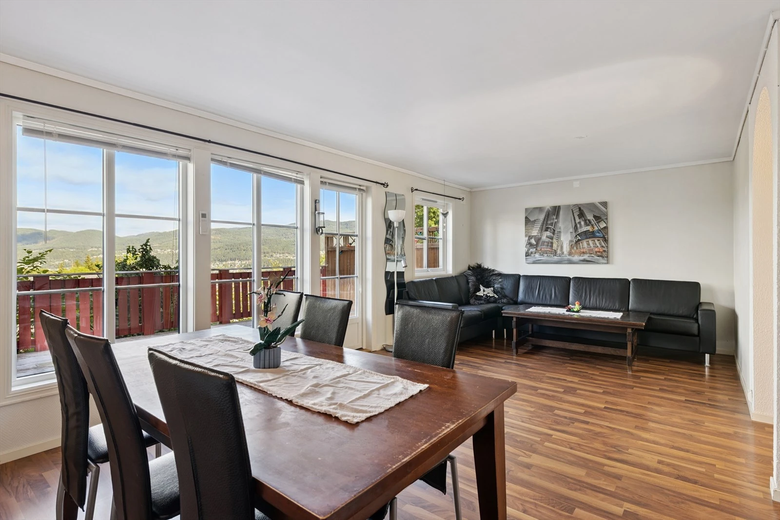 Stue: Stor og romslig stue med plass til både stuemøblement og spisestue. Her er det store, fine vindusflater som sikrer godt med naturlig lys. Stor veranda med nydelig utsikt!