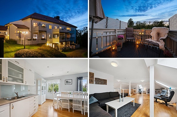Velkommen til Tandbergåsen 44M - en delikat og tiltalende eierleilighet med gode solforhold og god intern beliggenhet. Boligen ligger på enden og toppen! Dette gjør at leiligheten ikke har noe innsyn. Tandbergåsen ligger høyt og fritt i Sande, samtidig som sentrum er kun noen minutter unna. Kort vei også til Vestskauen med flotte tur- og rekreasjonsmuligheter sommer som vinter. Det sies at Vestskauen har Vestfolds beste løypenett hva gjelder langrenn.
