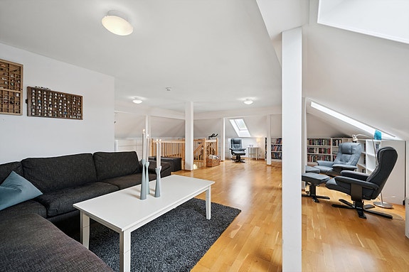 Loft/3.etg: Boligen har en loftsetasje på hele 37 kvm. Her er det en loftstue og bod. God plass til lagring!