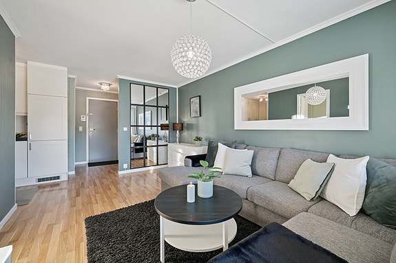Entrè: Fra felles innvendig trappegang kommer man inn i en hyggelig entrè. Her er det god plass til oppheng av klær etc. Innvendig bod til venstre.