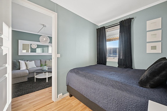 Soverom: Romslig og pent soverom med skyvedørsgarderobe.